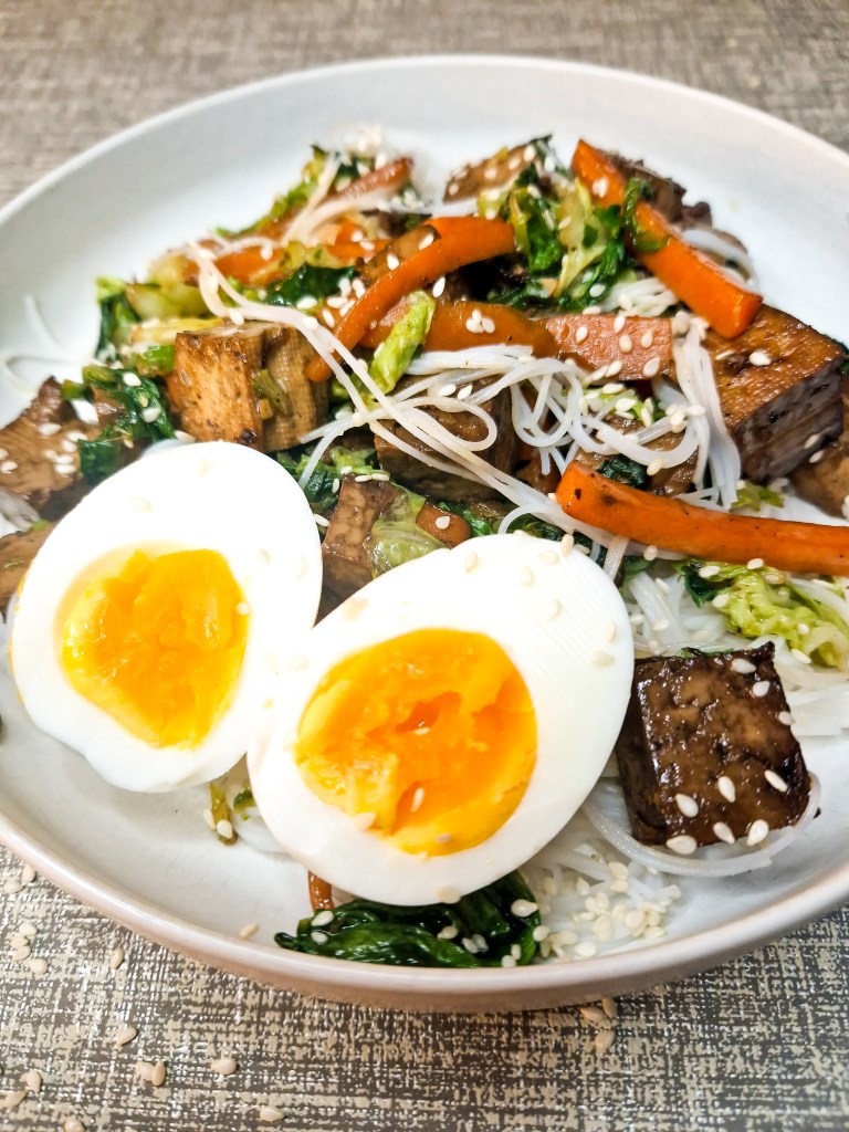 - Wanneer de eitjes gaar zijn zet je het vuur uit maar giet het water niet weg. Dompel hierin de noedels en laat deze in 4 min garen.