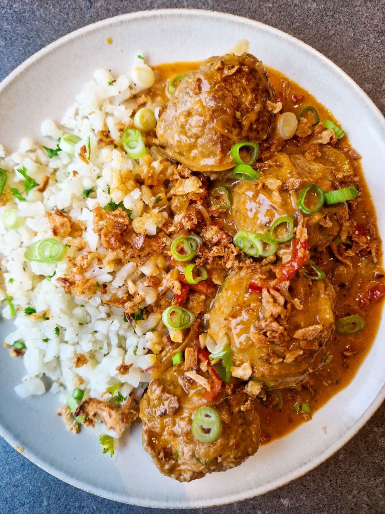 - Voeg de gehaktballetjes terug toe en laat even pruttelen.