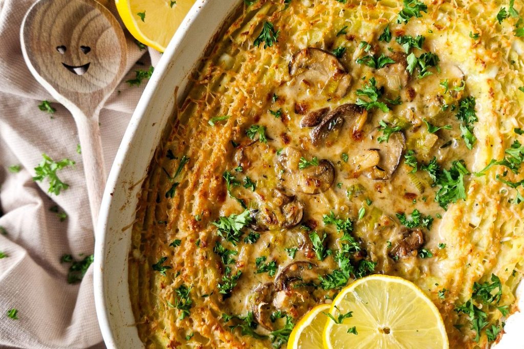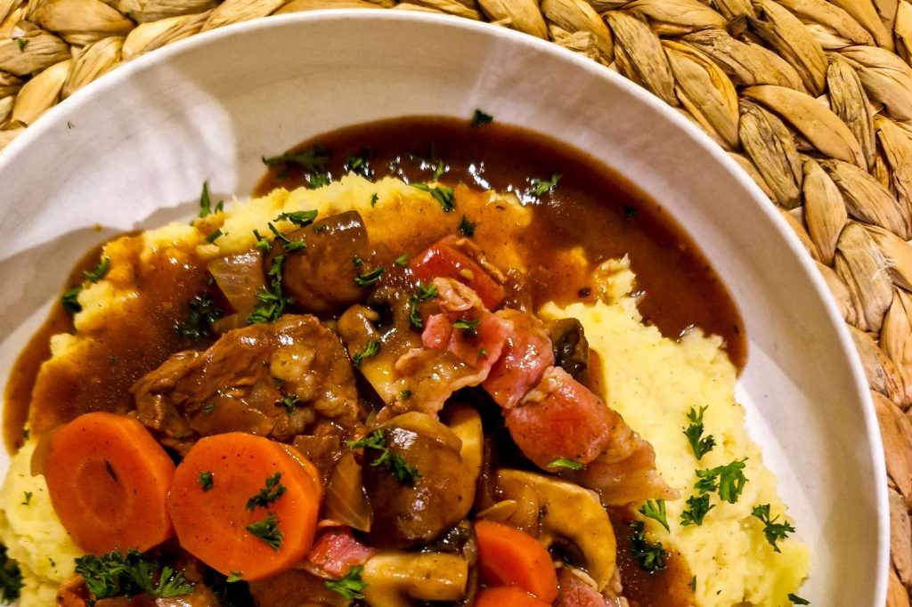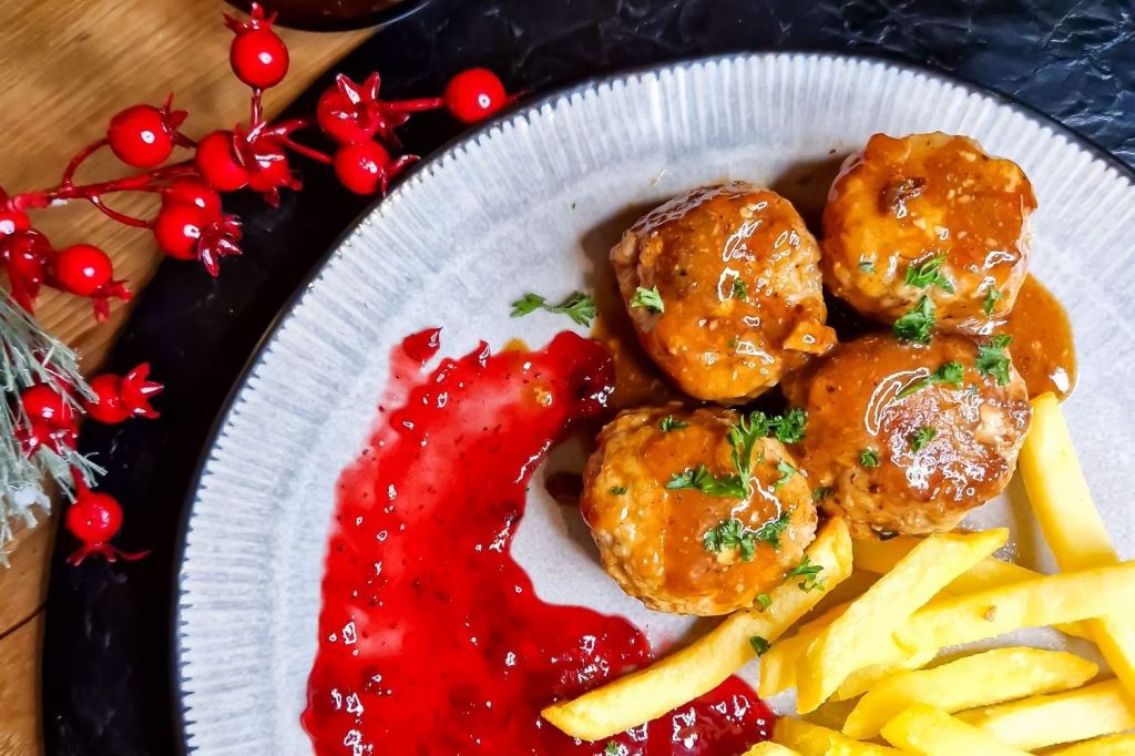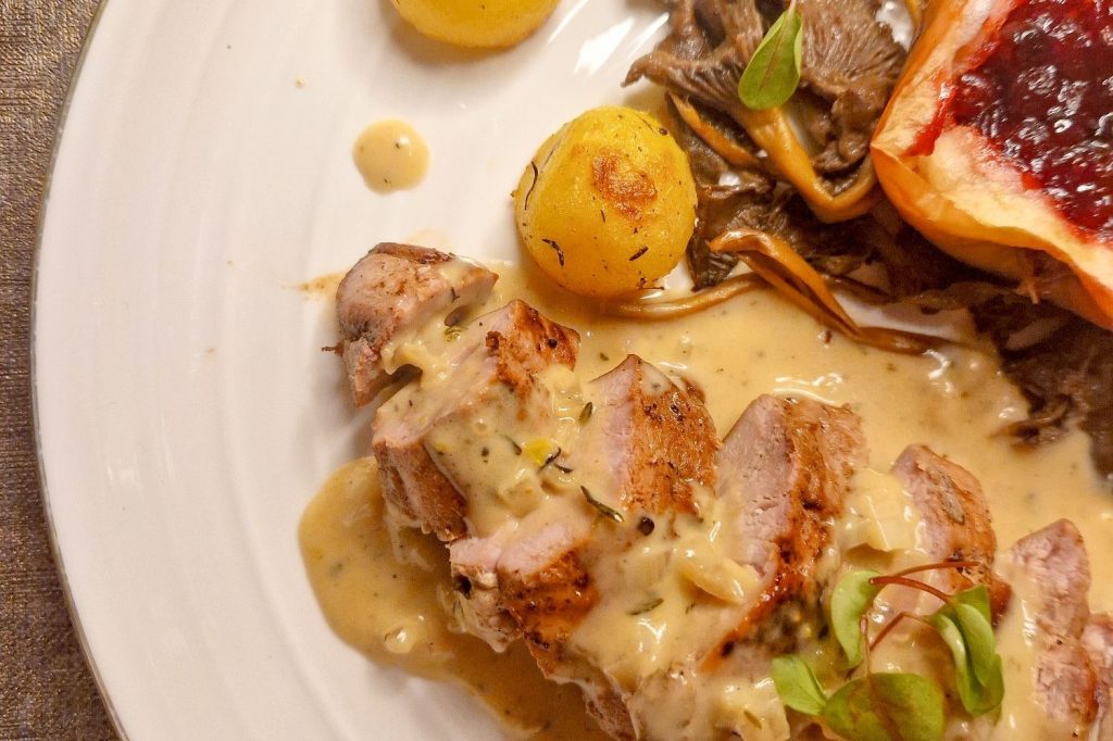 Fazantenfilet met romig sausje, cantharellen, aardappelbolletjes en gevulde appel