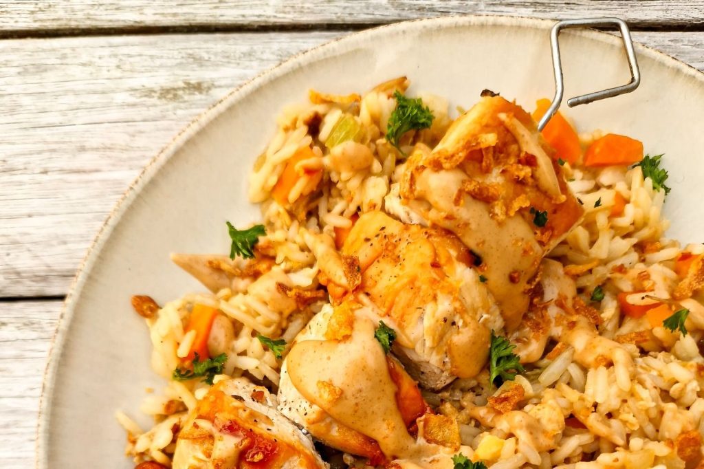 Quinoasalade met geroosterde wortel, witte bonen en kip