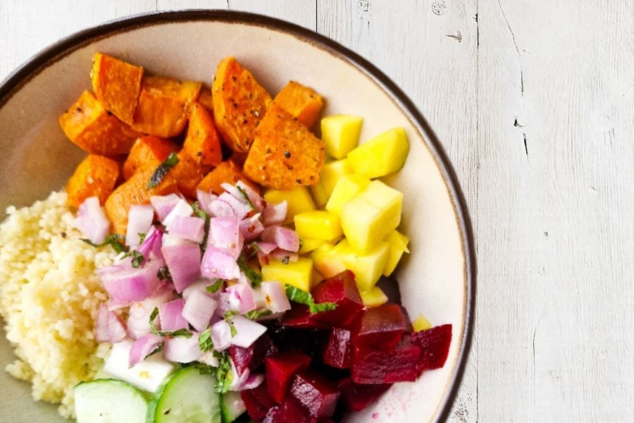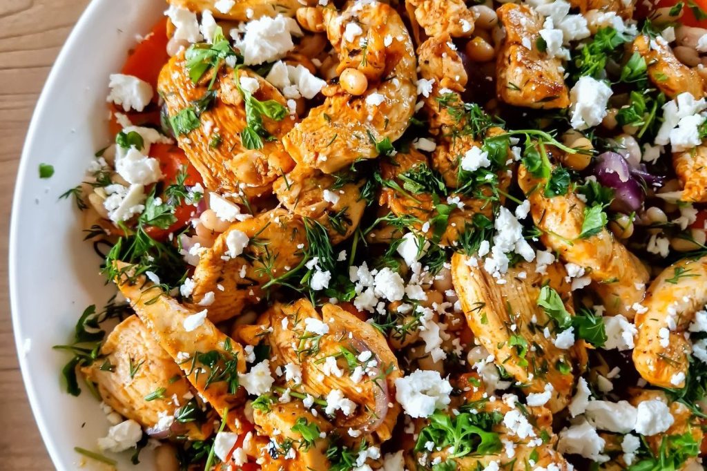 Quinoasalade met geroosterde wortel, witte bonen en kip